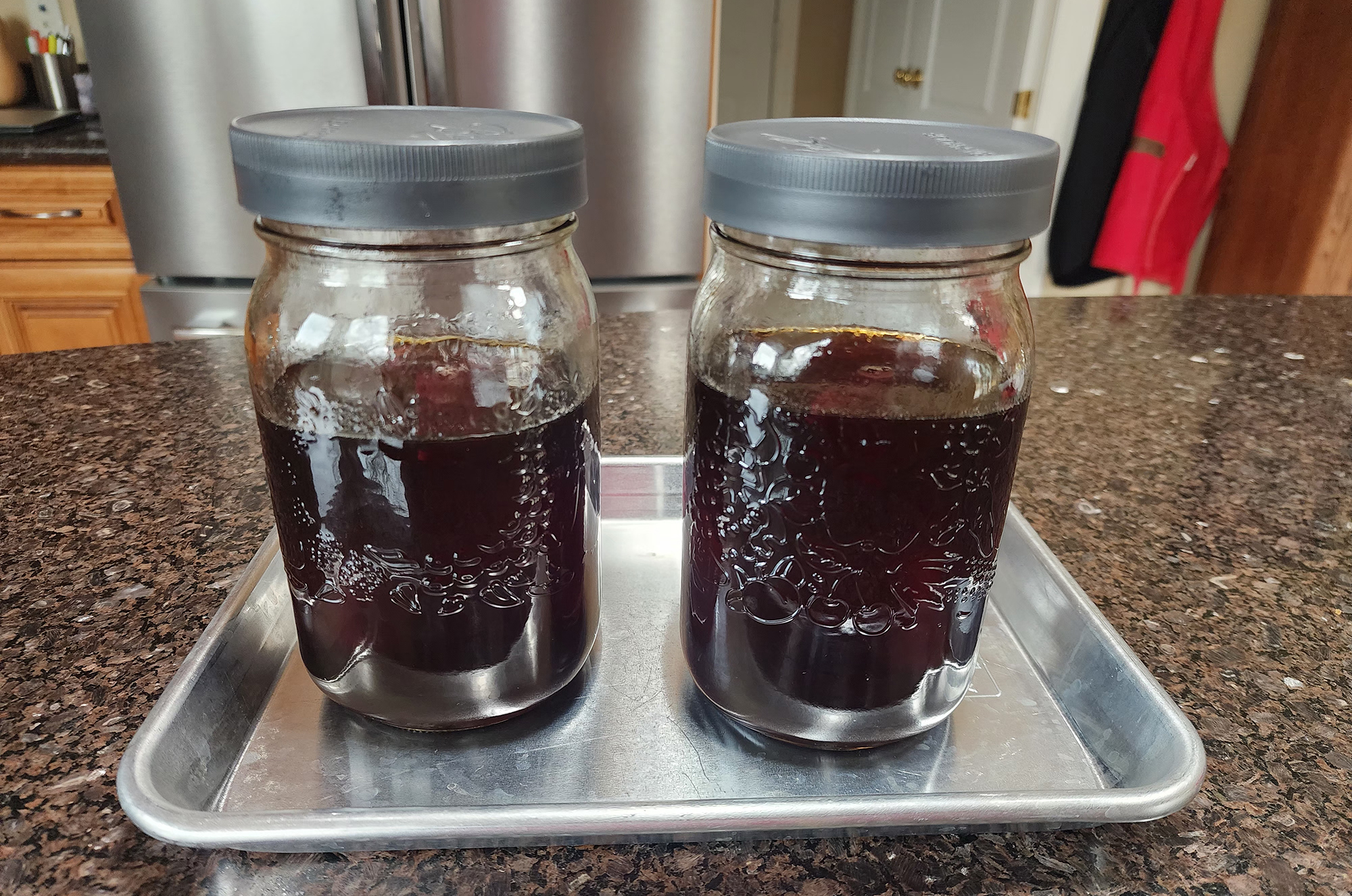 We did well this year, producing enough to fill 2 quart jars about 3/4 full each. That’s more than enough for us for the next twelve months.