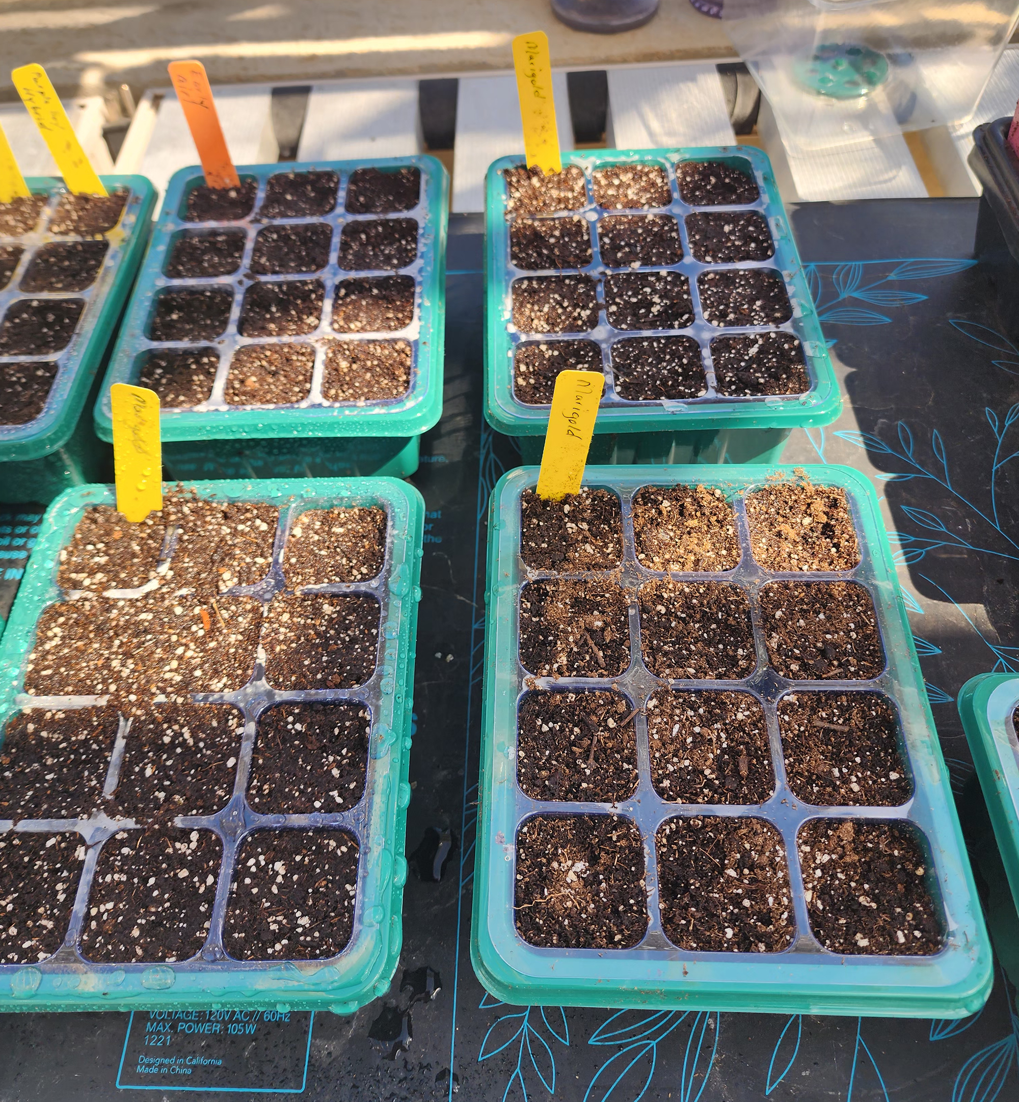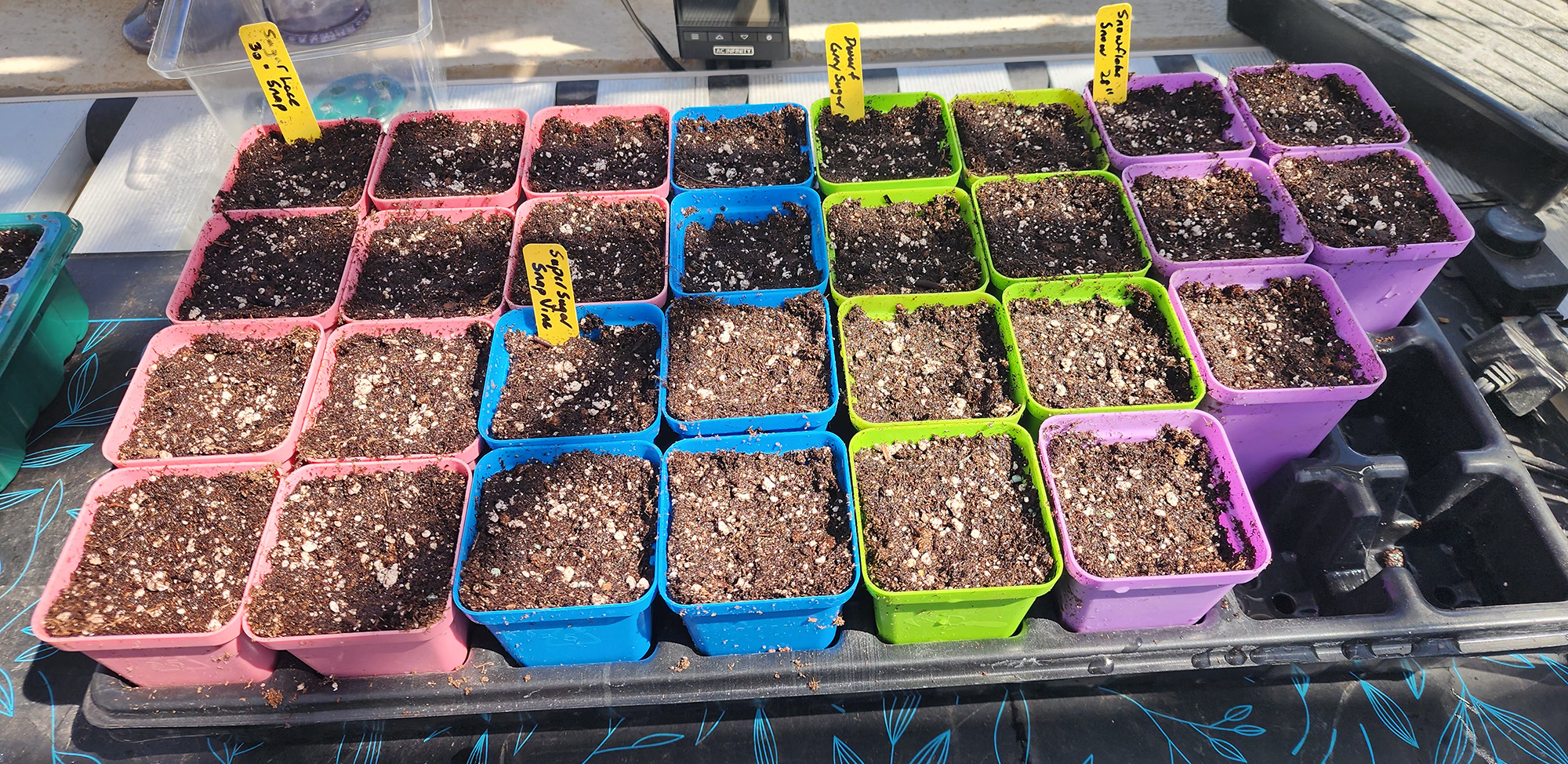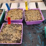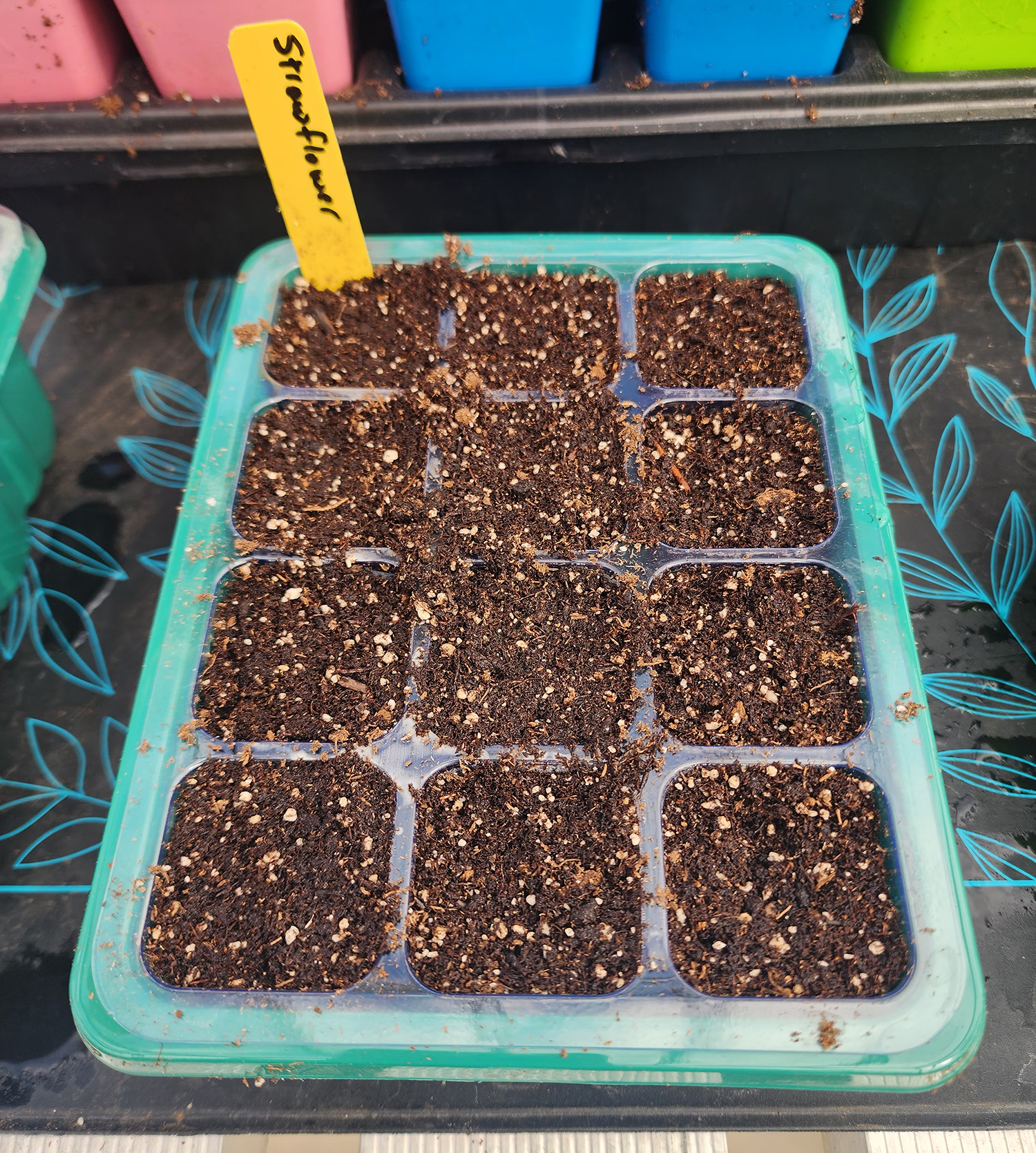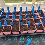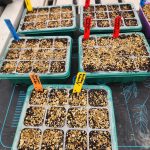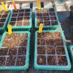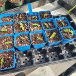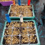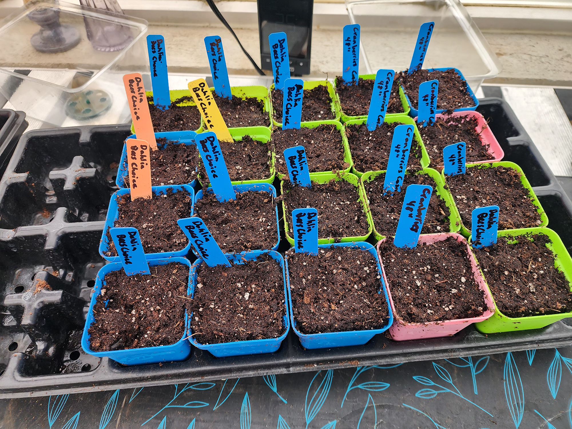 Started a few early flower starts today. Some of these were old seeds, so I sowed heavily and we’ll see what comes up. I have individual humidity domes for these small Boostrap Farmer trays which works well.