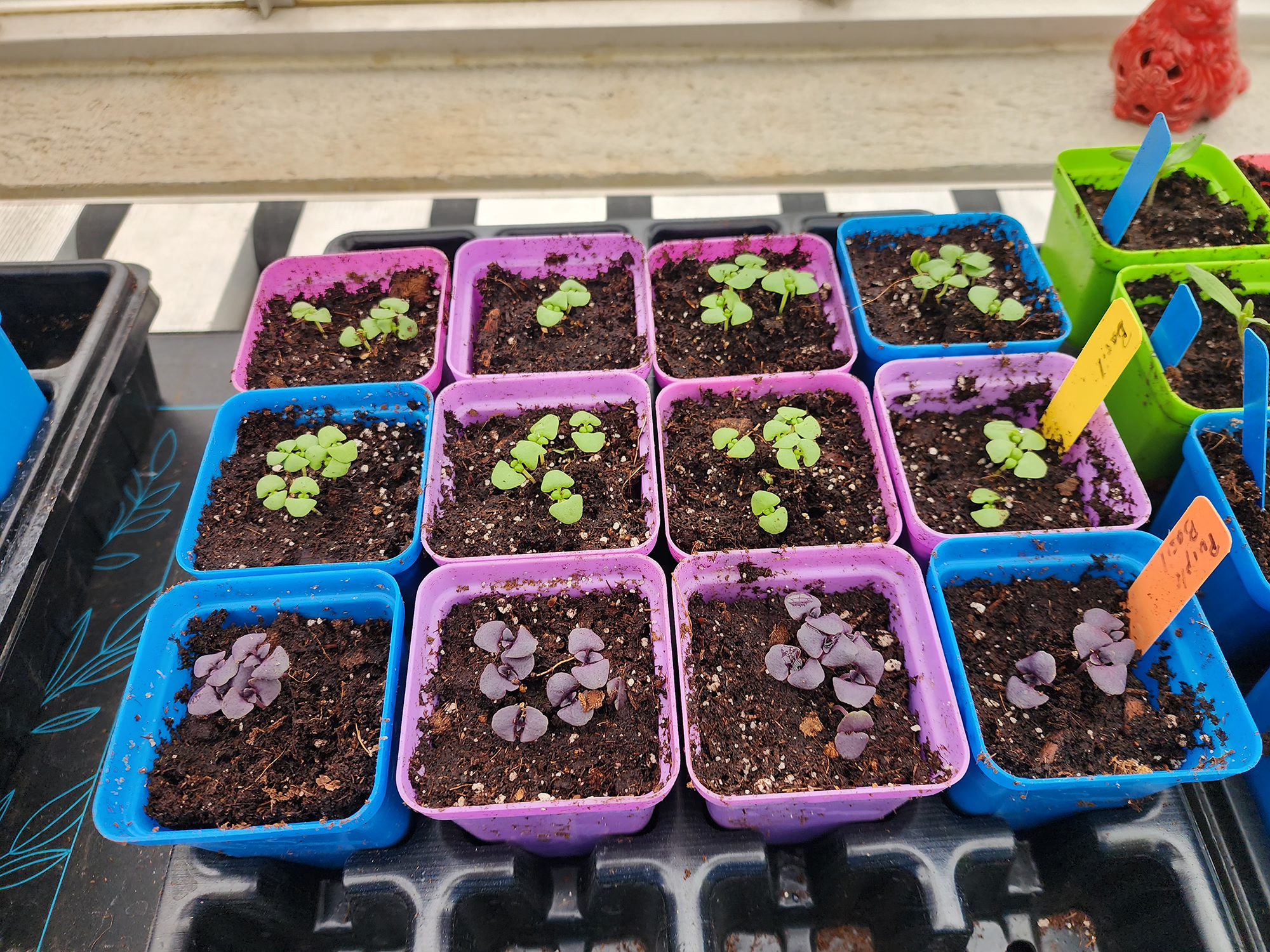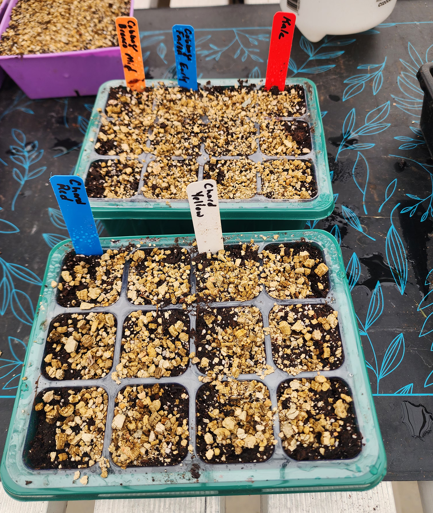 My plan to use up old seed is mostly working, however, my mid-season cabbage seeds did not germinate and I was out of red. So I purchased a few more seeds this week. All OSC: